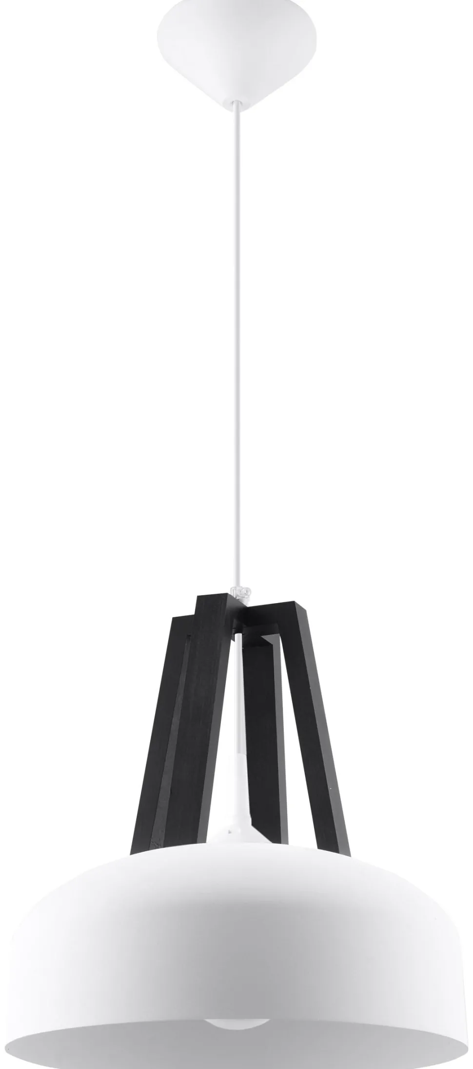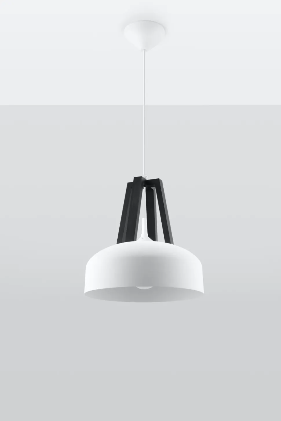 Weiße Retro Hängeleuchte aus Stahl und Holz