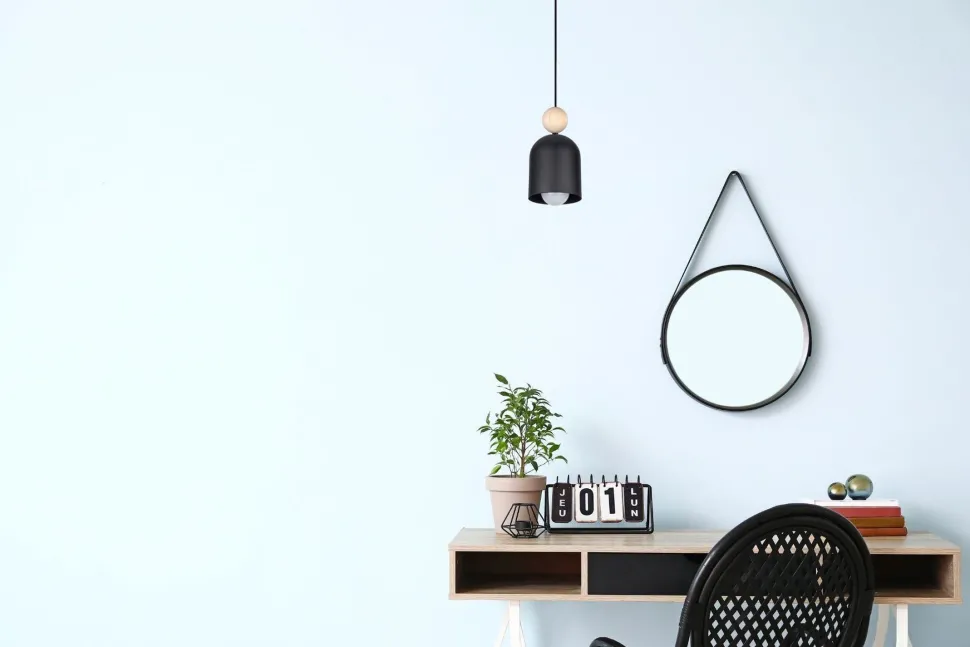 Der schwarze Metallschirm streut das Licht gebündelt nach unten