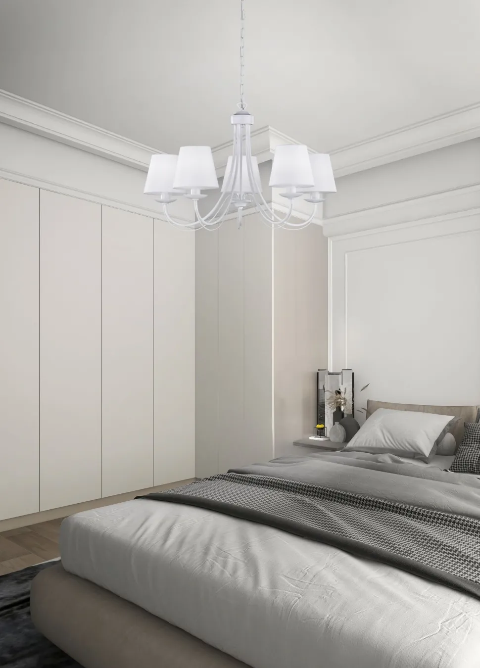 Retro Kronleuchter mit Stoffschirmen in Weiß