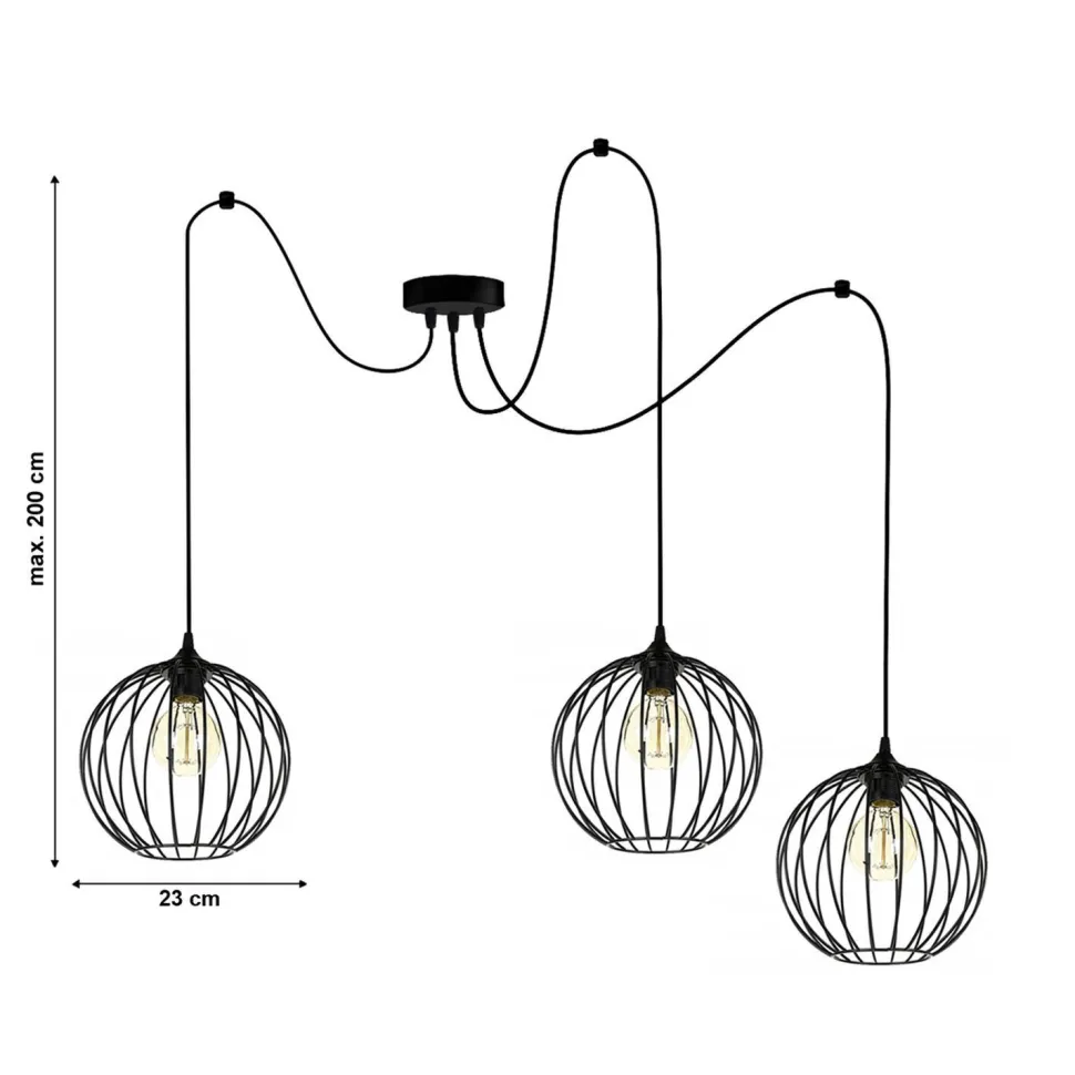 Freie Leuchtmittelwahl: Du kannst Helligkeit und Lichtfarbe mit der Wahl von passenden Leuchtmitteln individuell bestimmen | nicht inklusive Entdecke die zeitlose Eleganz der Industrie Hängelampe aus Metall in Schwarz – ein echtes Highlight für dein Zuhause! Diese stilvolle Esstischlampe vereint modernes Design mit funktionaler Flexibilität und ist die perfekte Wahl für große Räume. Mit ihren langen Kabeln und dem dekorativen Drahtschirm bietet sie nicht nur eine beeindruckende Lichtquelle, sondern auch einen Blick auf die Leuchtmittel, die du ganz nach deinem Geschmack wählen kannst. Die Spider Pendelleuchte ist ideal für Wohnzimmer, Esszimmer und Küche. Sie schafft eine einladende Atmosphäre, die sowohl für gesellige Abende als auch für entspannte Stunden geeignet ist. Dank des mitgelieferten Befestigungsmaterials kannst du die Lampe ganz nach deinen Wünschen anbringen und anpassen. So wird die Leuchte nicht nur zum funktionalen Element, sondern auch zum stilvollen Blickfang in deinem Raum. Ein weiterer Vorteil dieser Lampe ist die freie Wahl der Leuchtmittel. Du kannst die Helligkeit und Lichtfarbe individuell bestimmen und somit die perfekte Lichtstimmung für jeden Anlass schaffen. Ob warmes Licht für gemütliche Abende oder helles Licht für konzentriertes Arbeiten – die Entscheidung liegt ganz bei dir. Die Industrie Hängelampe aus Metall in Schwarz ist nicht nur eine Esstischleuchte, sondern auch eine stilvolle Ergänzung für dein Wohnzimmer. Ihr modernes Design und die hochwertige Verarbeitung machen sie zu einer langlebigen Investition, die deinem Raum Charakter verleiht. Fazit: Setze auf Qualität und Stil mit dieser vielseitigen Leuchte, die sowohl funktional als auch ästhetisch überzeugt. Hol dir die Industrie Hängelampe und erlebe, wie sie dein Zuhause in ein stilvolles Ambiente verwandelt!