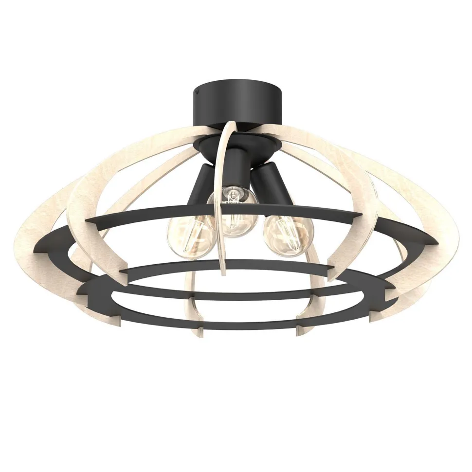 Moderne Deckenlampe aus lackiertem Stahl und Holz in Schwarz und Natur