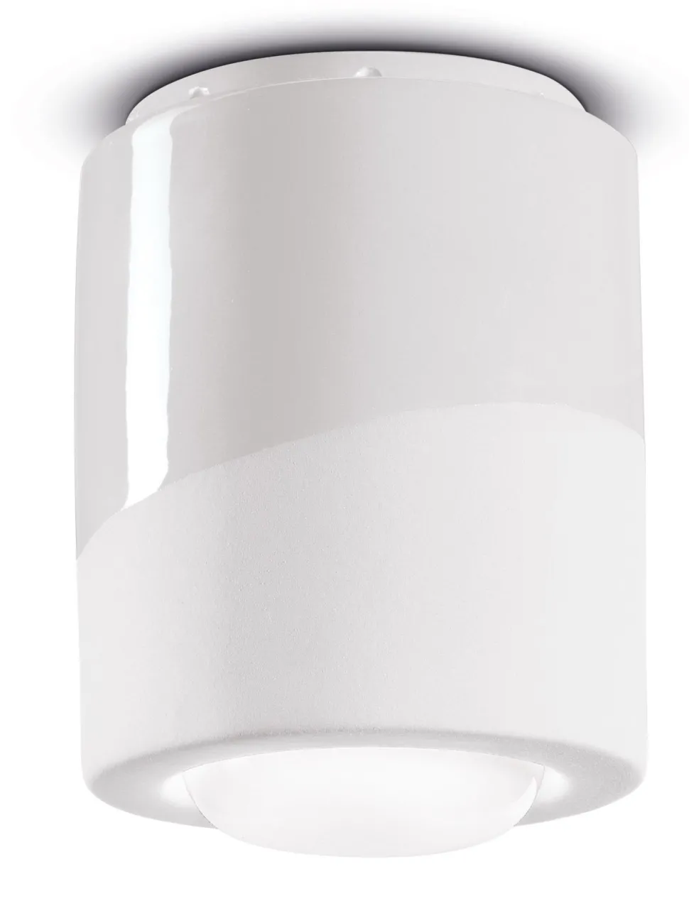 Runder Aufputz Deckenspot aus massiver Keramik in hellem Weiß