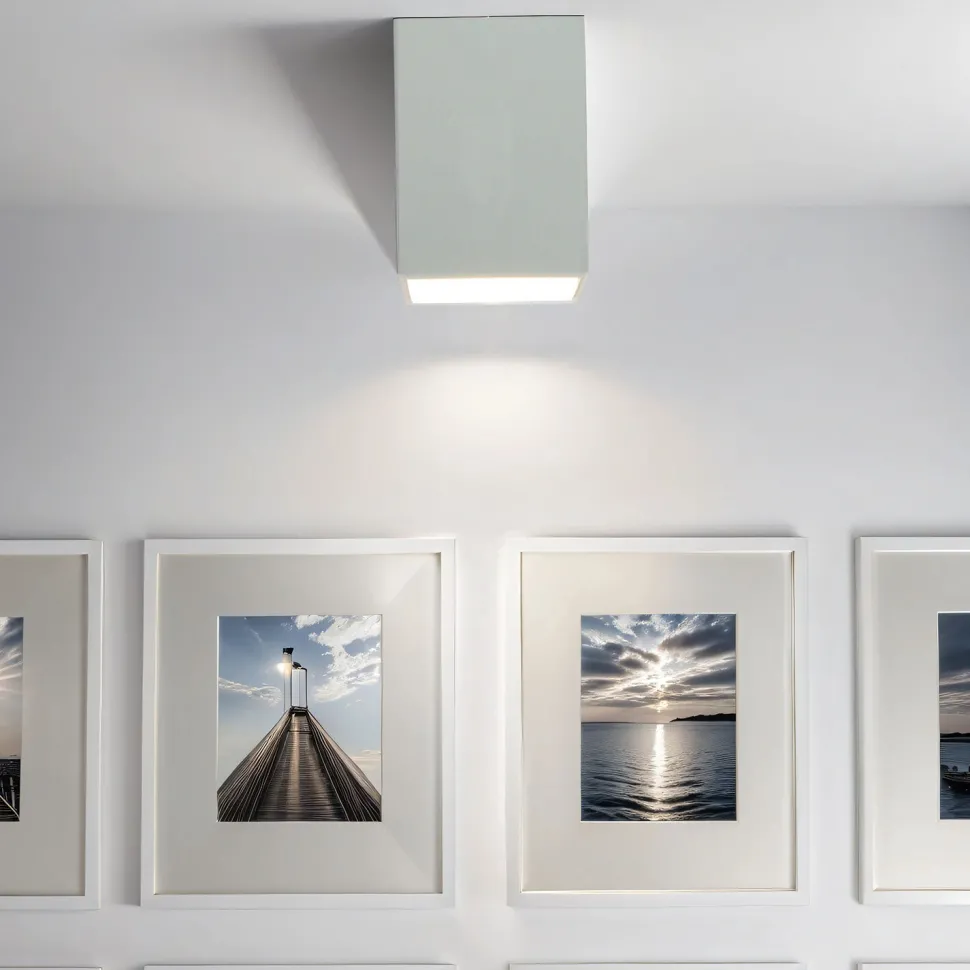 Dank der geringen Größe und der dezenten Farbe ist der Aufputz Spot ein praktisches Licht Highlight in Wohnzimmer, Flur und Treppenhaus