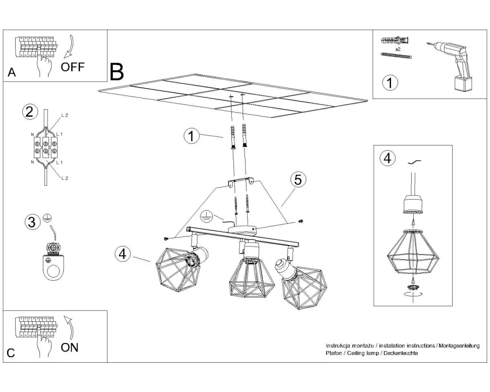 Die dreh- und schwenkbaren Lampenschirme erlauben eine zielgerichtete Beleuchtung, was die Deckenlampe zu einer vielseitigen Lichtquelle macht