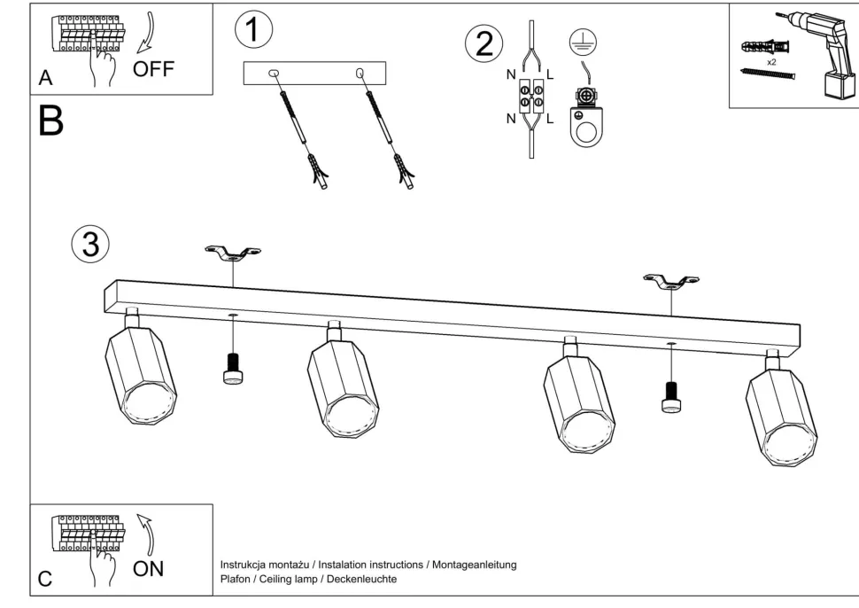 Die Deckenleuchte erlaubt dank der dreh- und schwenkbaren Schirme eine zielgerichtete Beleuchtung und passt ideal in Wohnzimmer, Küche und Flur
