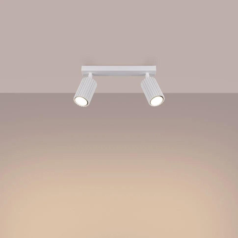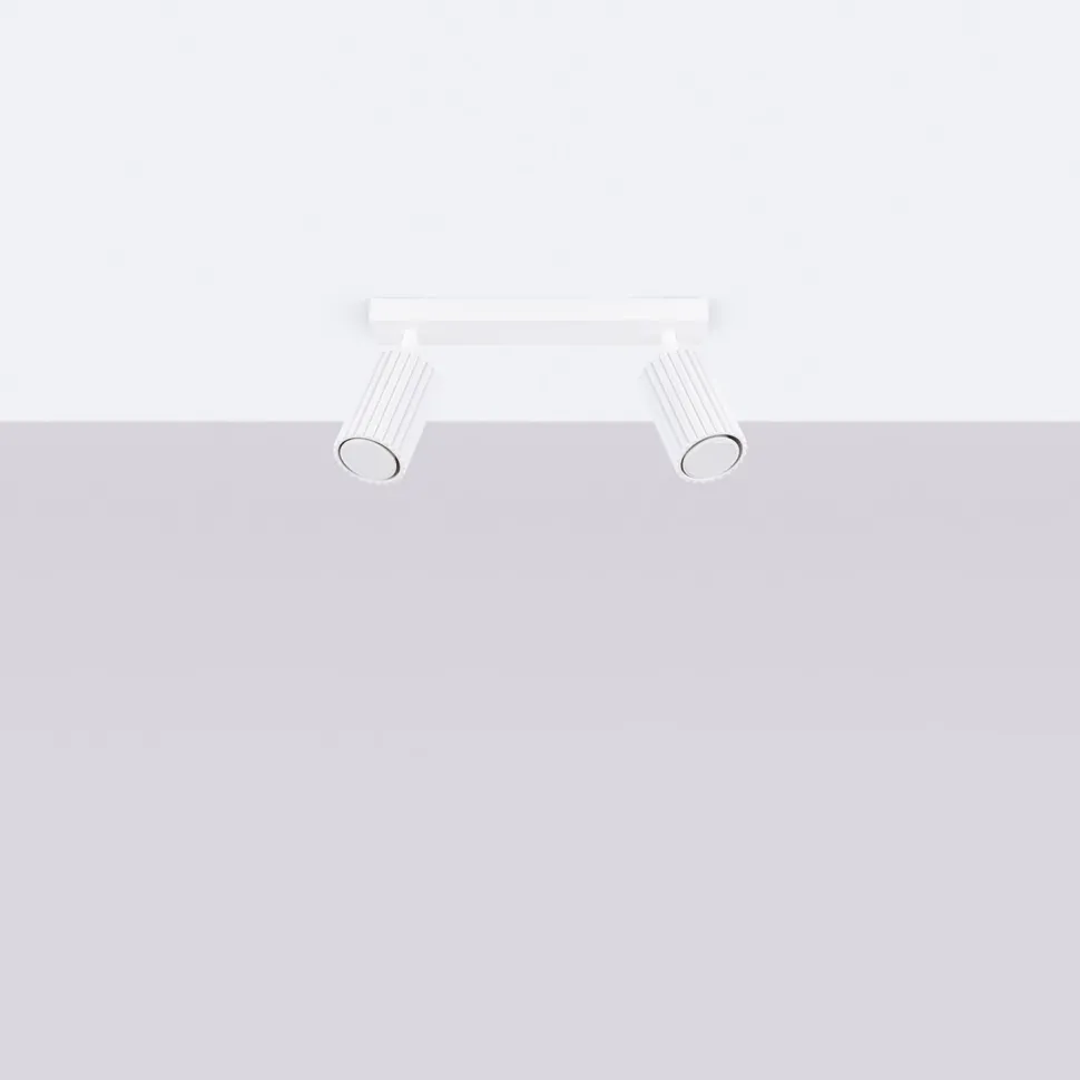 Kleiner Deckenstrahler aus Aluminium in dezentem Weiß