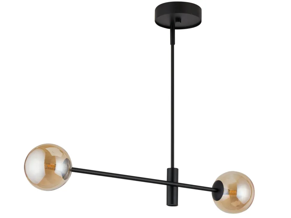 Moderne Design Pendelleuchte aus lackiertem Stahl und Glas in Schwarz und Bernstein