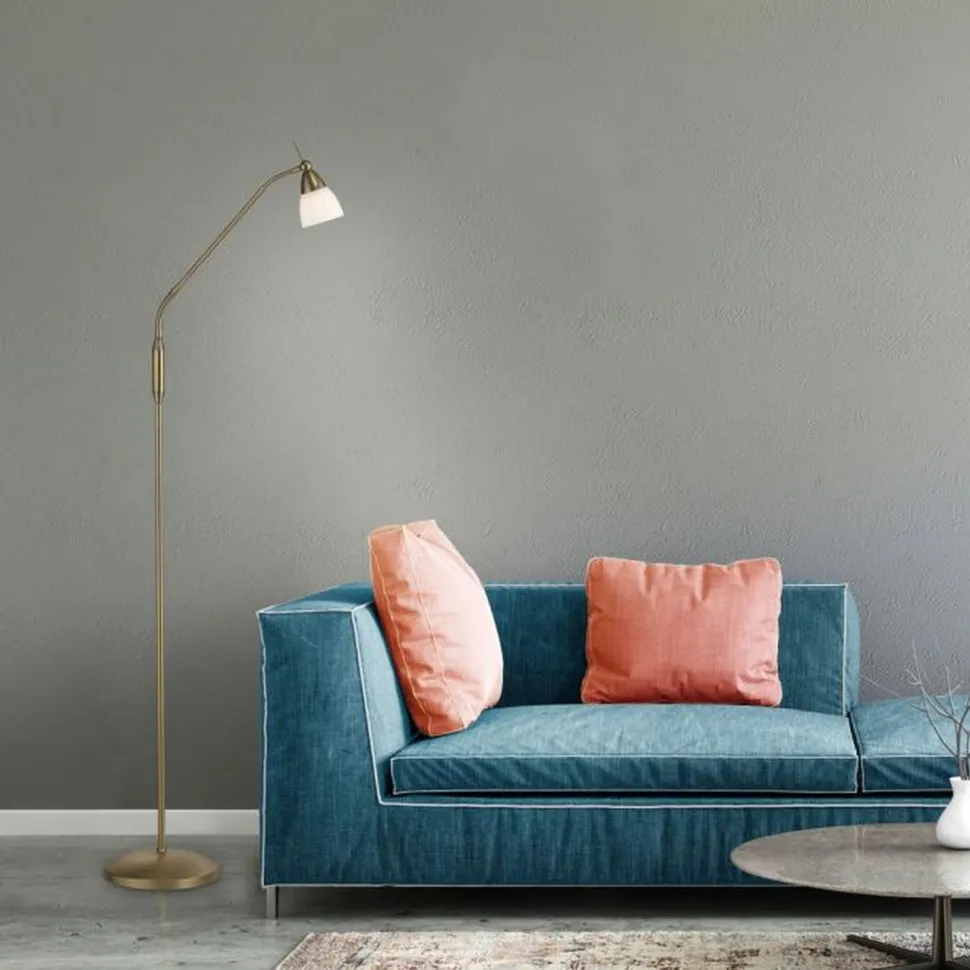 Ideale Stehleuchte als Leselampe und Ambientelicht neben dem Sofa im Wohnzimmer