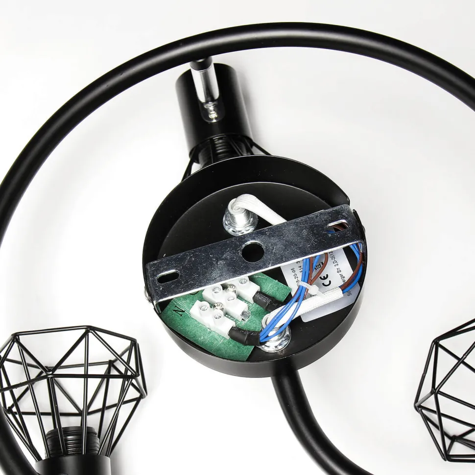 Vielseitige Deckenleuchte mit geometrischem Drahtschirm in Schwarz