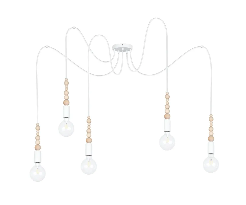 Qualität Made in EU Entdecke die Spider Pendelleuchte TRUILI – ein stilvolles Highlight für dein Zuhause! Diese außergewöhnliche Pendelleuchte vereint modernes Design mit einem Hauch von Retro-Charme. Mit einer Länge von 2000 mm und einer Höhe von 4000 mm ist sie nicht nur ein Blickfang, sondern auch äußerst funktional. Die Kombination aus hochwertigem Metall und Holz in elegantem Weiß sorgt für eine harmonische Atmosphäre in deinem Wohnzimmer oder Esszimmer. Die TRUILI Pendelleuchte ist mehrflammig und bietet Platz für bis zu fünf E27 Leuchtmittel (max. 60W), die du ganz nach deinem Geschmack wählen kannst. So kannst du die Lichtstimmung individuell anpassen – ideal für gesellige Abende am Esstisch oder entspannte Stunden im Wohnzimmer. Die dekorativen Holzkügelchen und das schirmlose Design setzen die Leuchtmittel perfekt in Szene und verleihen deinem Raum eine einladende Note. Dank der extrem langen Flexkabel kannst du die Pendelleuchte flexibel an der Decke befestigen und somit optimal an deine Raumhöhe anpassen. Mit einer IP20–Schutzklasse ist die TRUILI Pendelleuchte perfekt für den Innenbereich geeignet und überzeugt durch ihre Qualität, die in der EU gefertigt wird. Egal, ob du nach einer stilvollen Esstischlampe oder einer modernen Hängelampe für dein Wohnzimmer suchst – die TRUILI Pendelleuchte ist die perfekte Wahl für designbewusste Menschen, die Wert auf Qualität und Funktionalität legen. Lass dich von der Kombination aus Holz und Metall inspirieren und bringe mit dieser Lampe einen Hauch von skandinavischem Design in dein Zuhause! Fazit: Die Spider Pendelleuchte TRUILI ist nicht nur eine praktische Lichtquelle, sondern auch ein stilvolles Dekorationselement, das deinem Raum Charakter verleiht. Hol dir jetzt dieses einzigartige Stück für dein Zuhause!