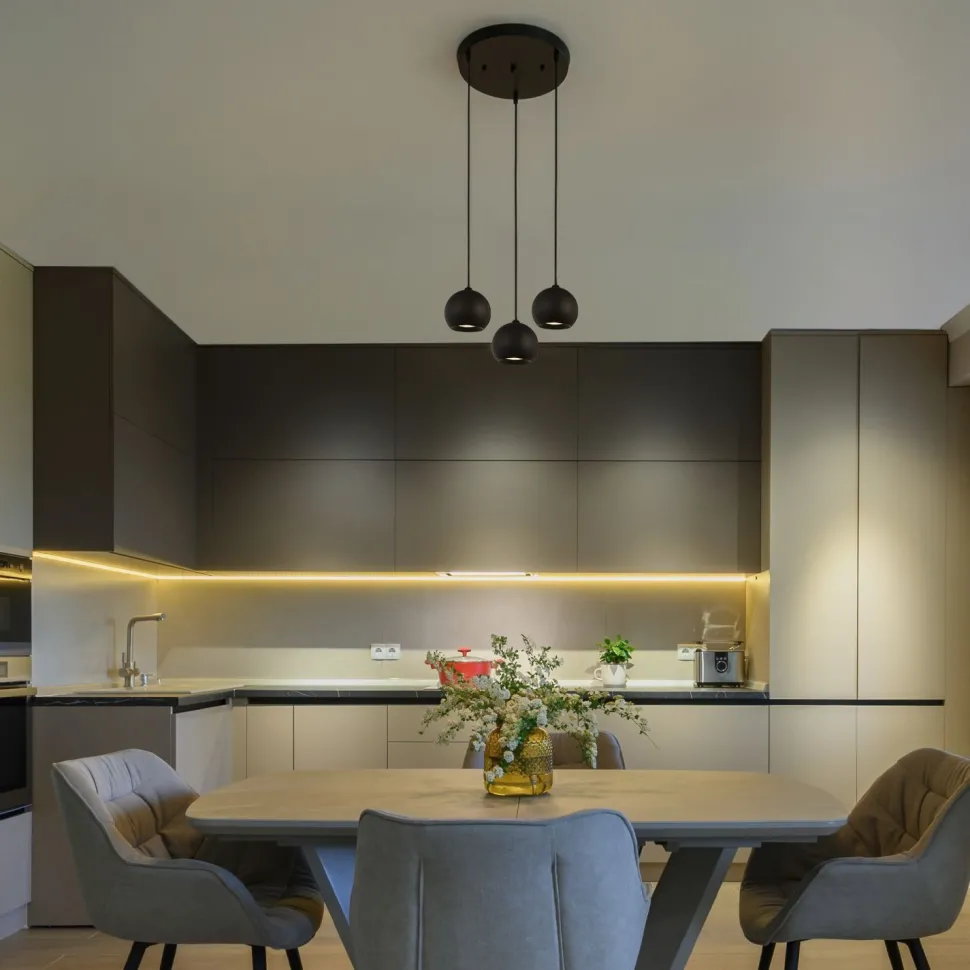 Die Hängelampe erlaubt eine punktuelle Beleuchtung nach unten – ideal über Esstisch, Kücheninsel und Tresen