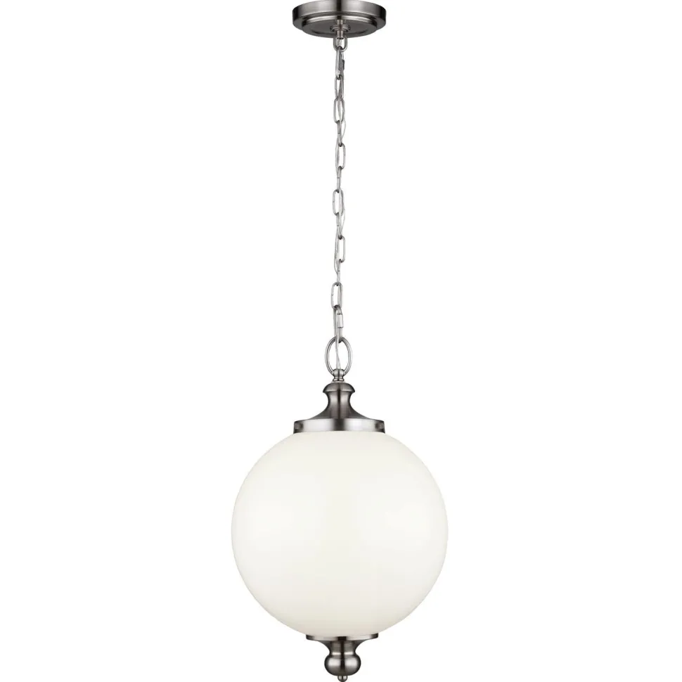 Pendelleuchte mit Glas Kugel Schirm in Weiß und Edelstahl für Esszimmer und Wohnzimmer