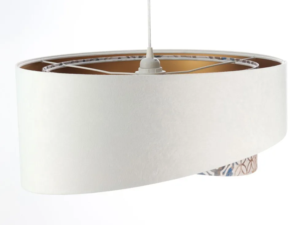 Elegante Pendelleuchte in Weiß, Beige, Gold mit stilvollen Vintage Print für Wohnzimmer, Schlafzimmer und Esszimmer