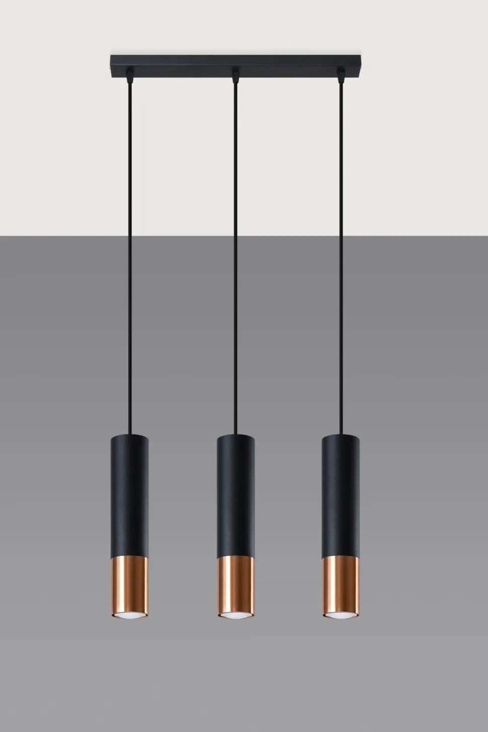 Moderne Pendelleuchte in Schwarz und Kupfer