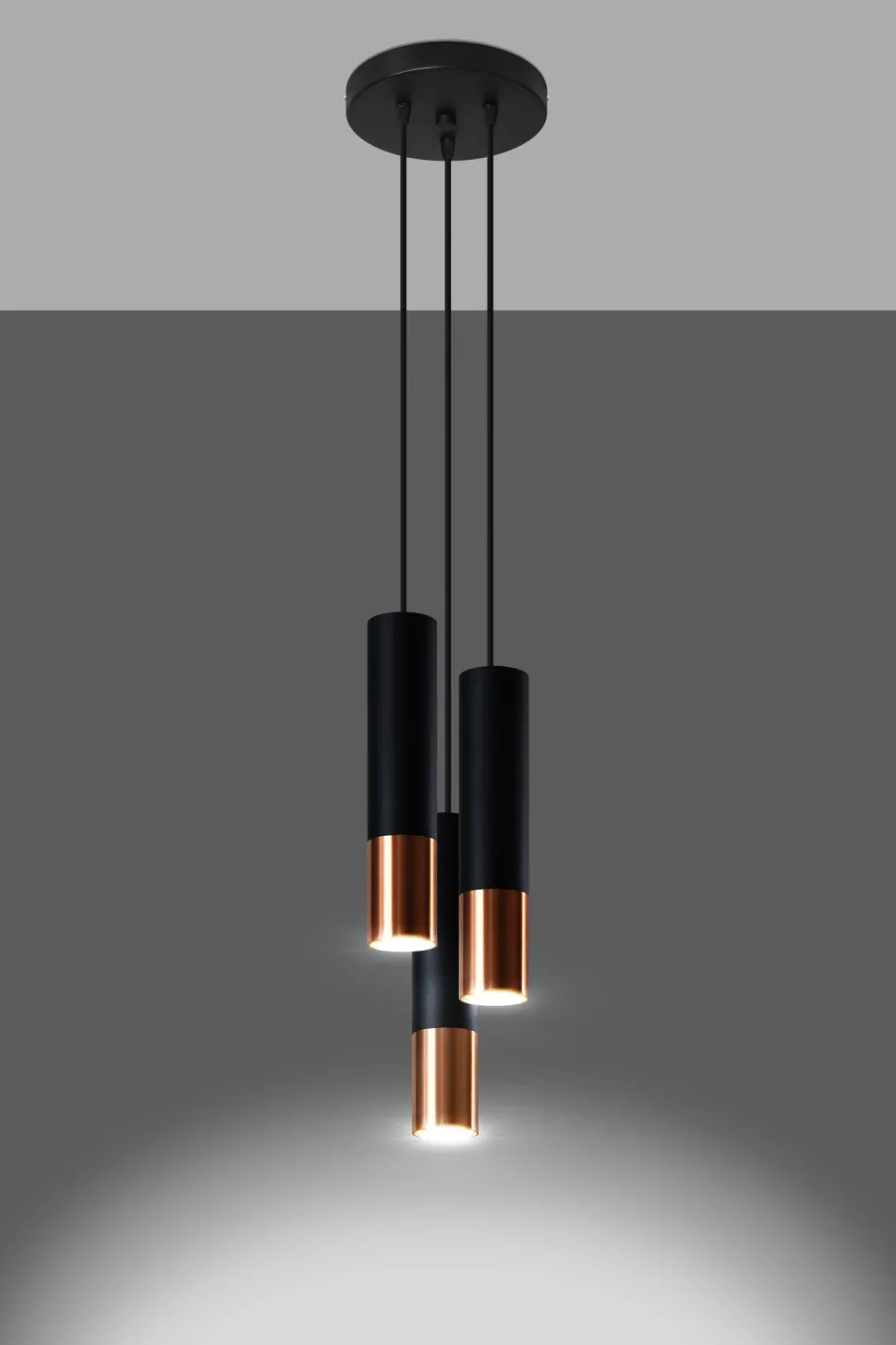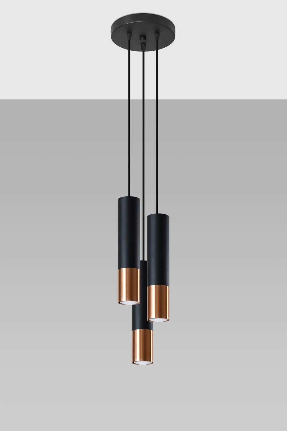 Moderne Pendelleuchte in Schwarz und Kupfer