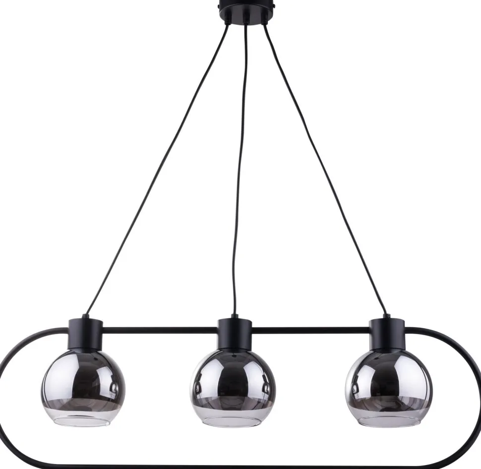 Moderne Design Hängelampe aus lackiertem Stahl und Glas in Schwarz und Silber