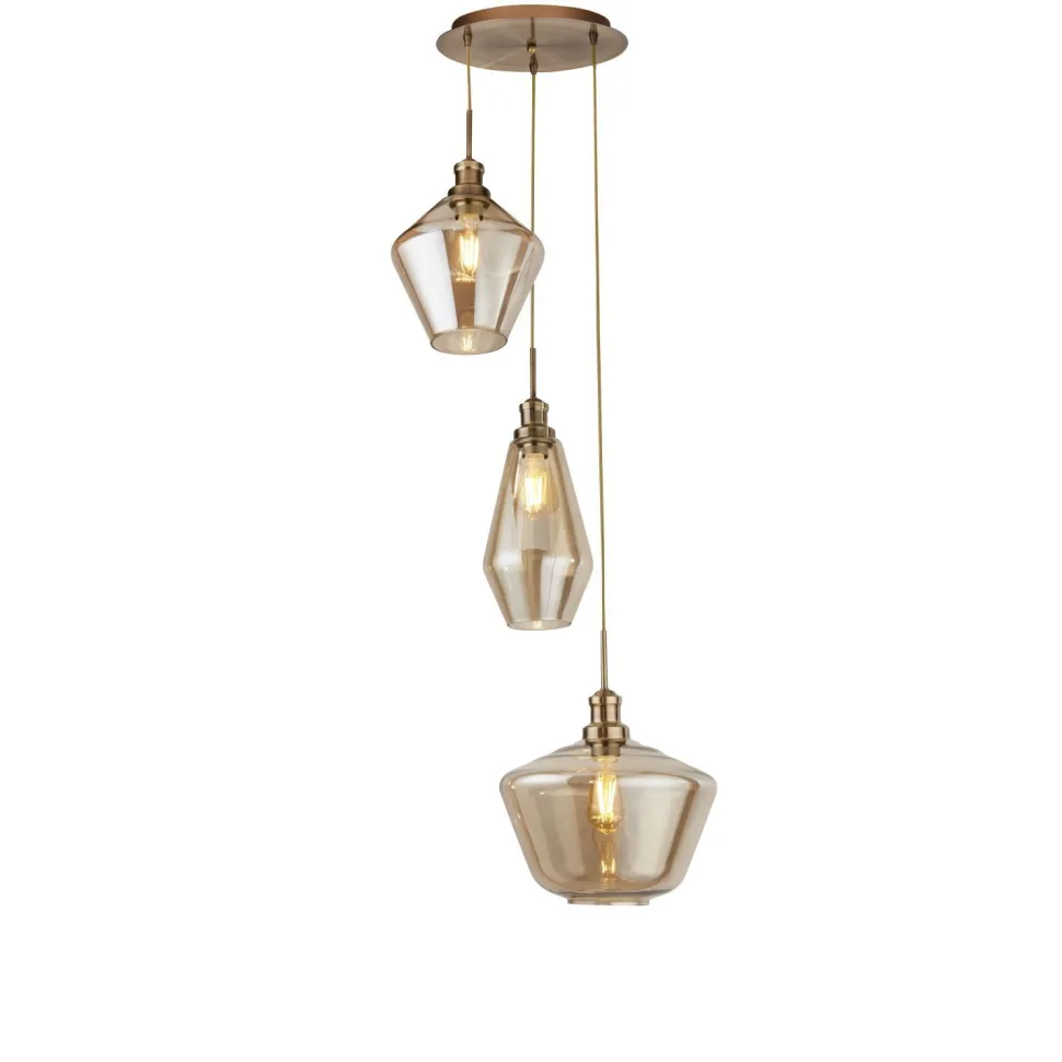Stilvolle Pendelleuchte mit Rauchglasschirm in Creme