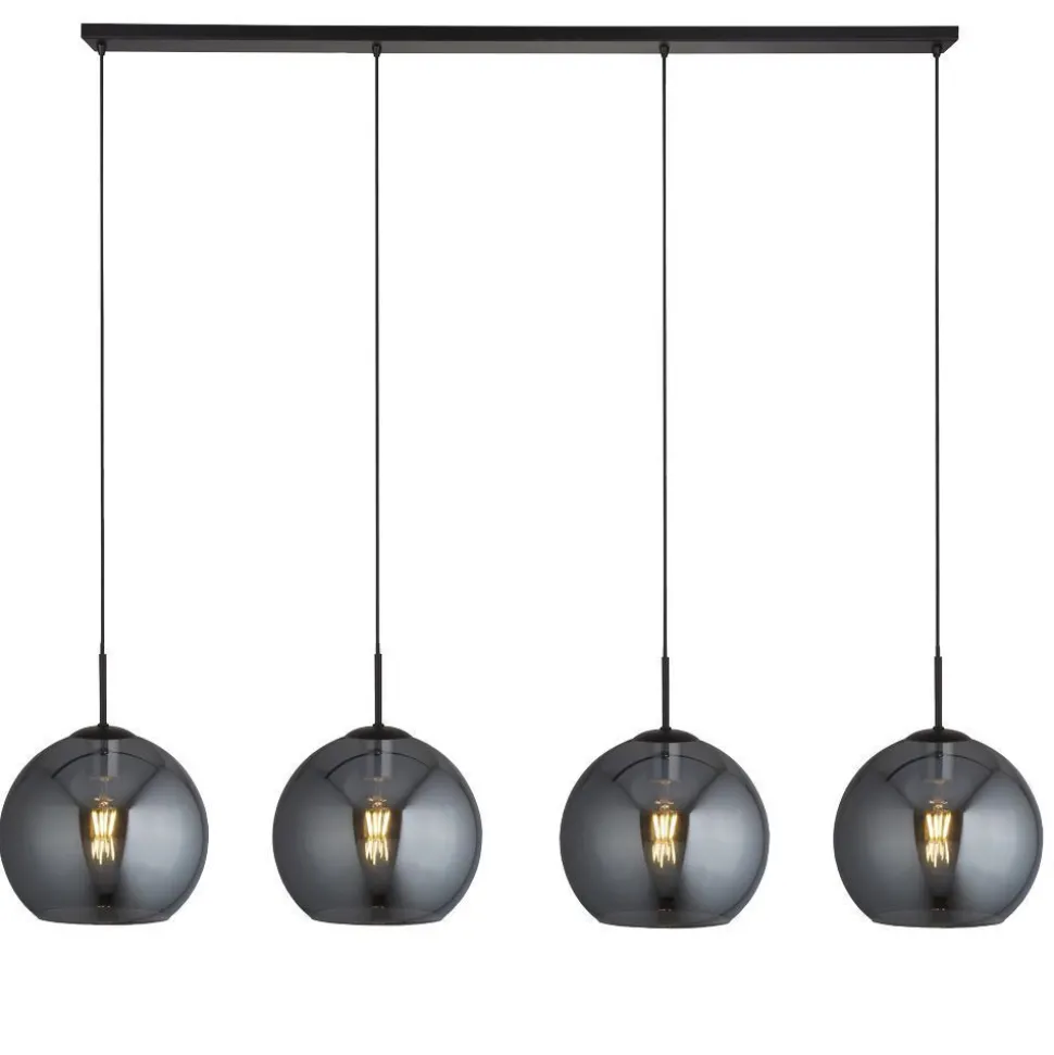 Das Rauchglas verleiht dem Kugelschirm einen besonderen Look, was aus der Hängelampe einen absoluten Blickfang macht
