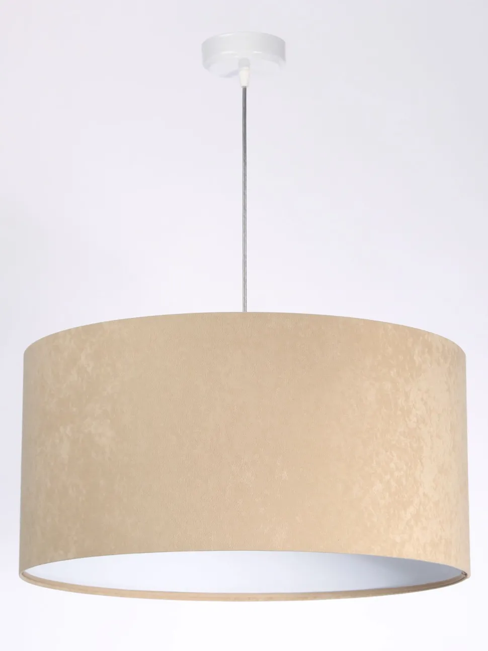 Gemütliche Pendelleuchte mit rundem Schirm in wohnlichem Beige