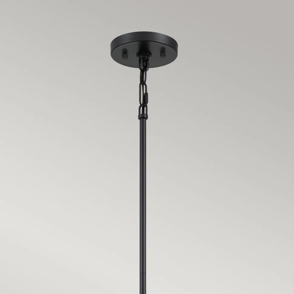 Die hexagonalen Schirme setzten einen außergewöhnlichen Akzent, der aus der langen Hängelampe einen besonderen Blickfang macht