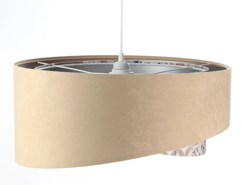 Elegante Pendelleuchte in Beige, Beige, Silber mit stilvollen Vintage Print für Wohnzimmer, Schlafzimmer und Esszimmer