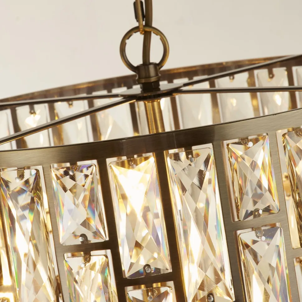Die funkelnden Glas Kristalle sorgen für einen dekorativen Look und verleihen der Hängelampe den Glanz der 1920er Jahre – ein absolutes Highlight in jedem Raum