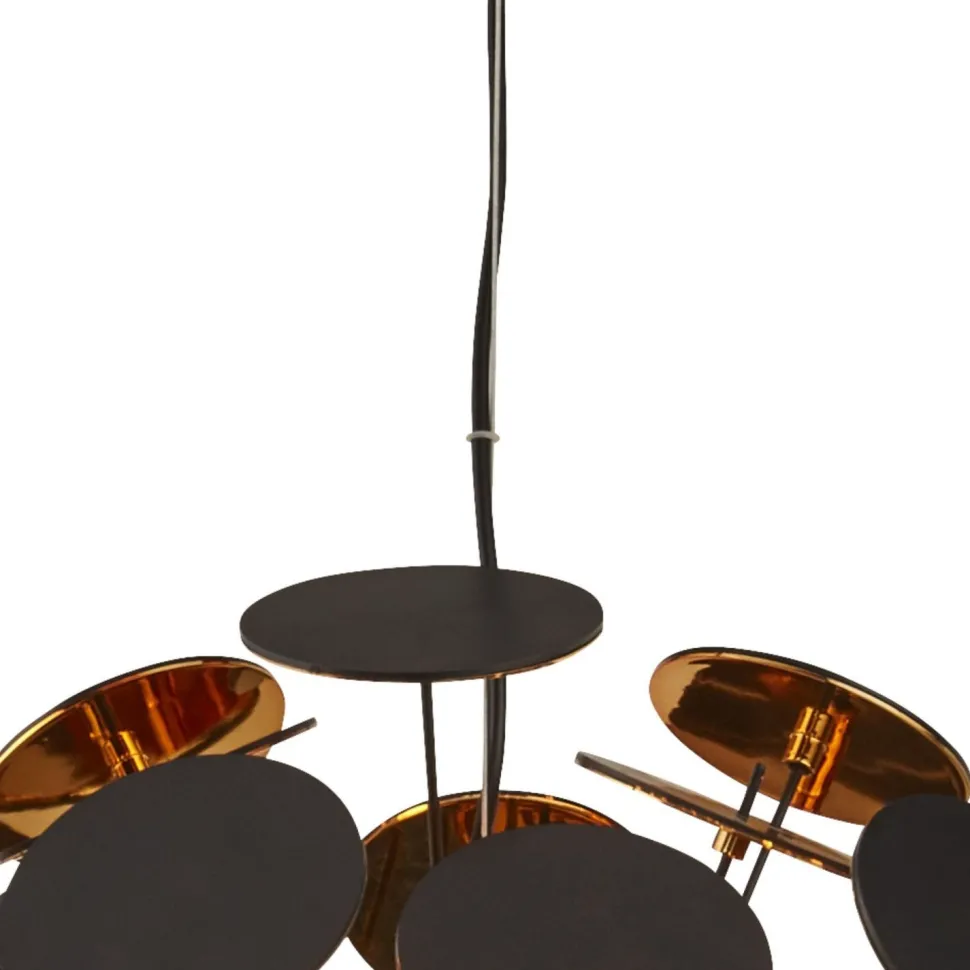 Das Licht scheint auf die in Gold gehaltene Innenseite des Schirms, was für eine schimmernde Lichtwirkung sorgt