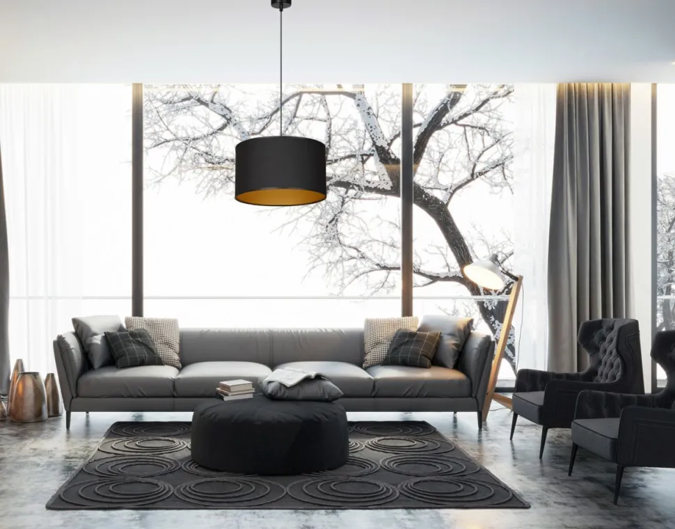 Elegante Pendelleuchte mit schwarzem Stoff Schirm für Schlafzimmer, Wohnzimmer und Esszimmer