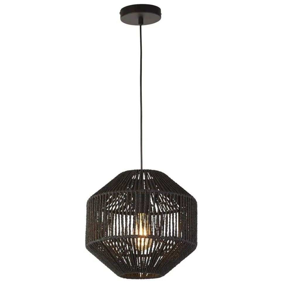 Dekorative Pendelleuchte mit kunstvollem Lampenschirm aus schwarzem Seil