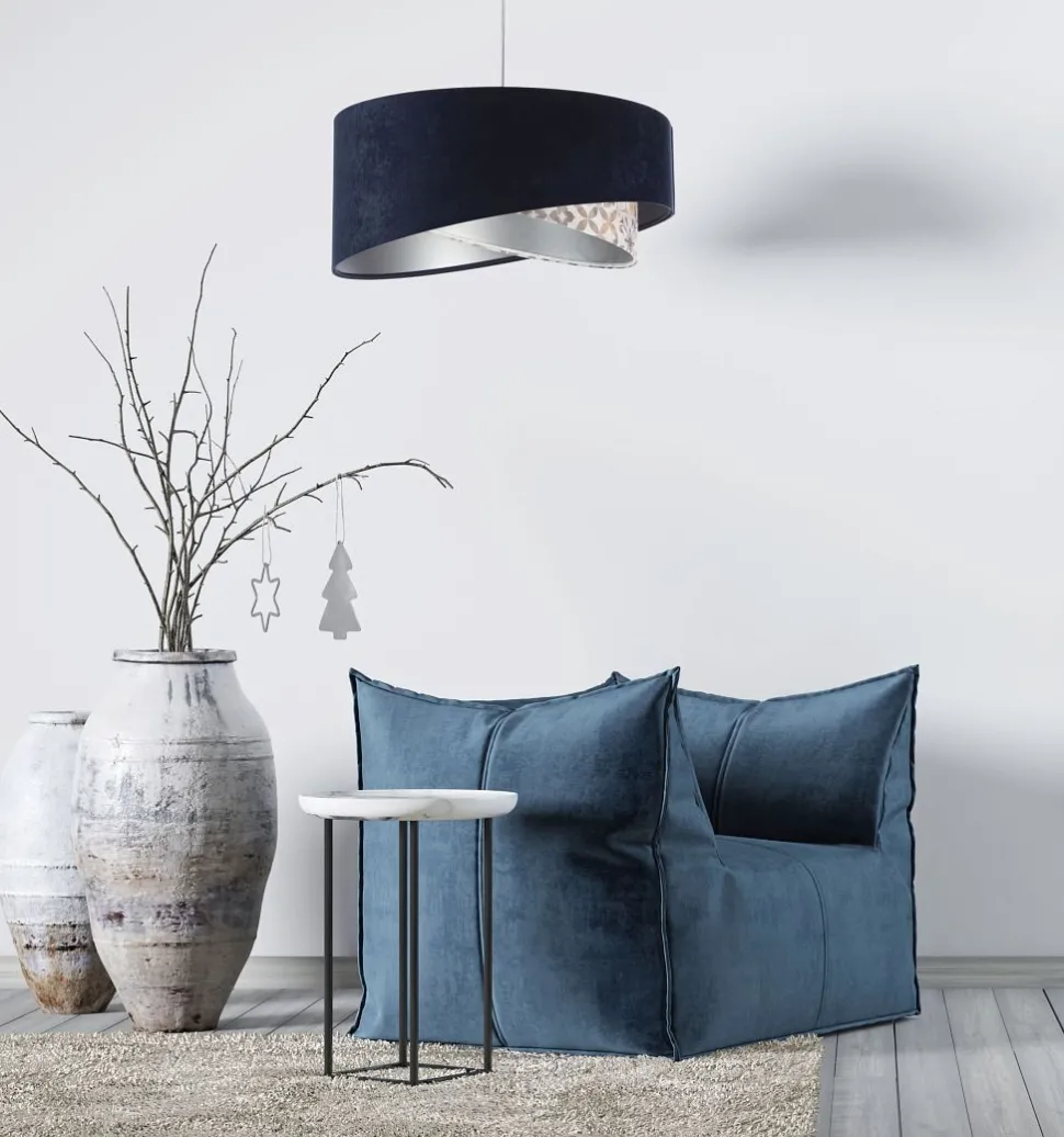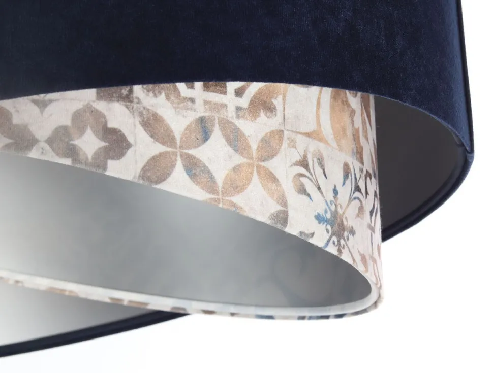 Elegante Pendelleuchte in Marineblau, Beige, Silber mit stilvollen Vintage Print für Wohnzimmer, Schlafzimmer und Esszimmer