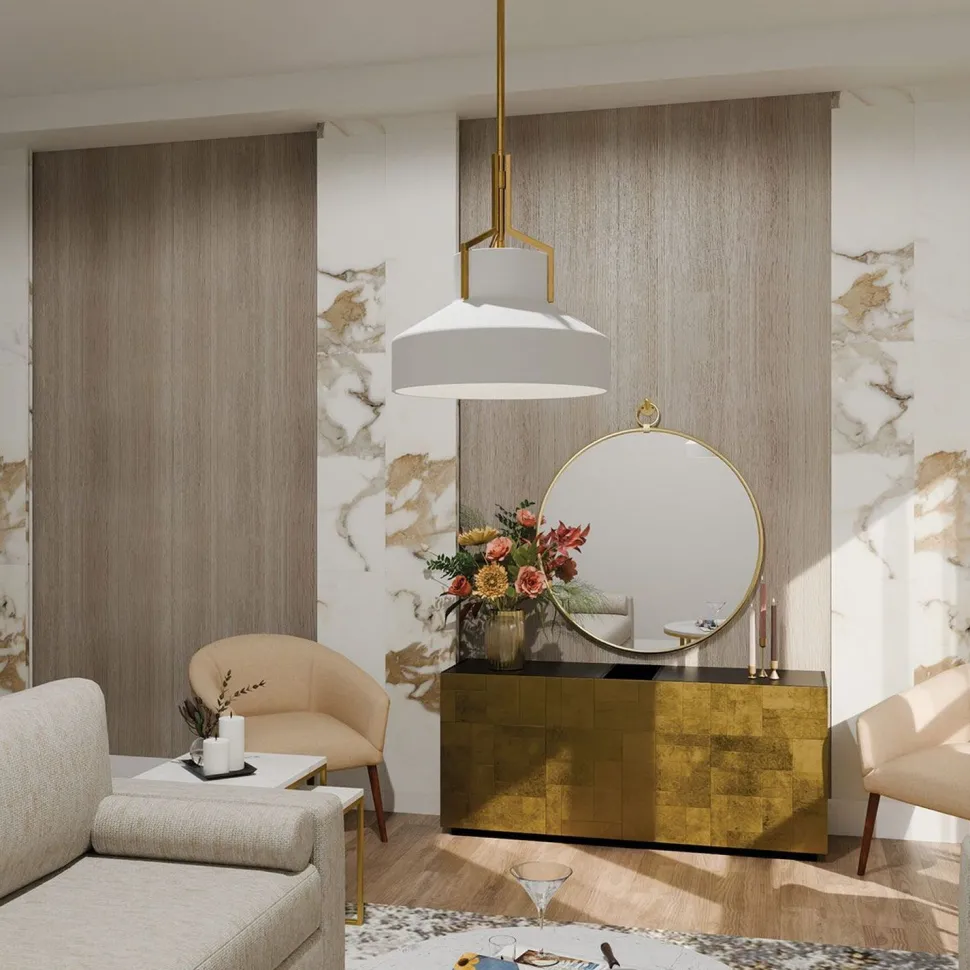 Stilvolle Pendelleuchte in Messing und Weiß