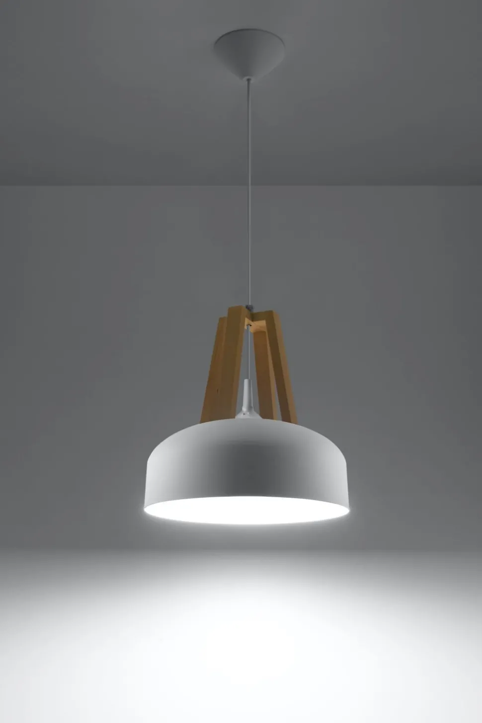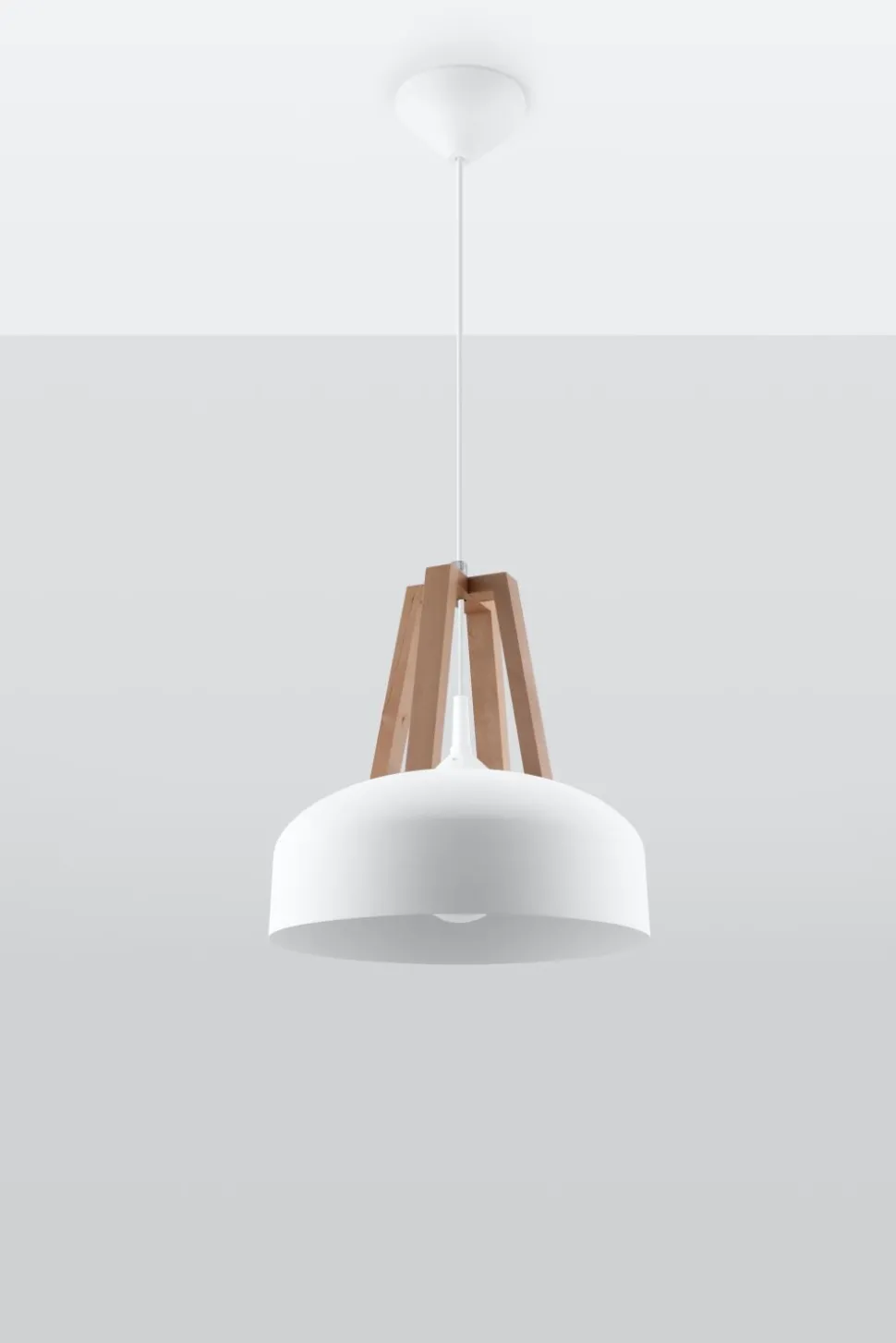 Weiße Retro Hängeleuchte aus Stahl und Holz
