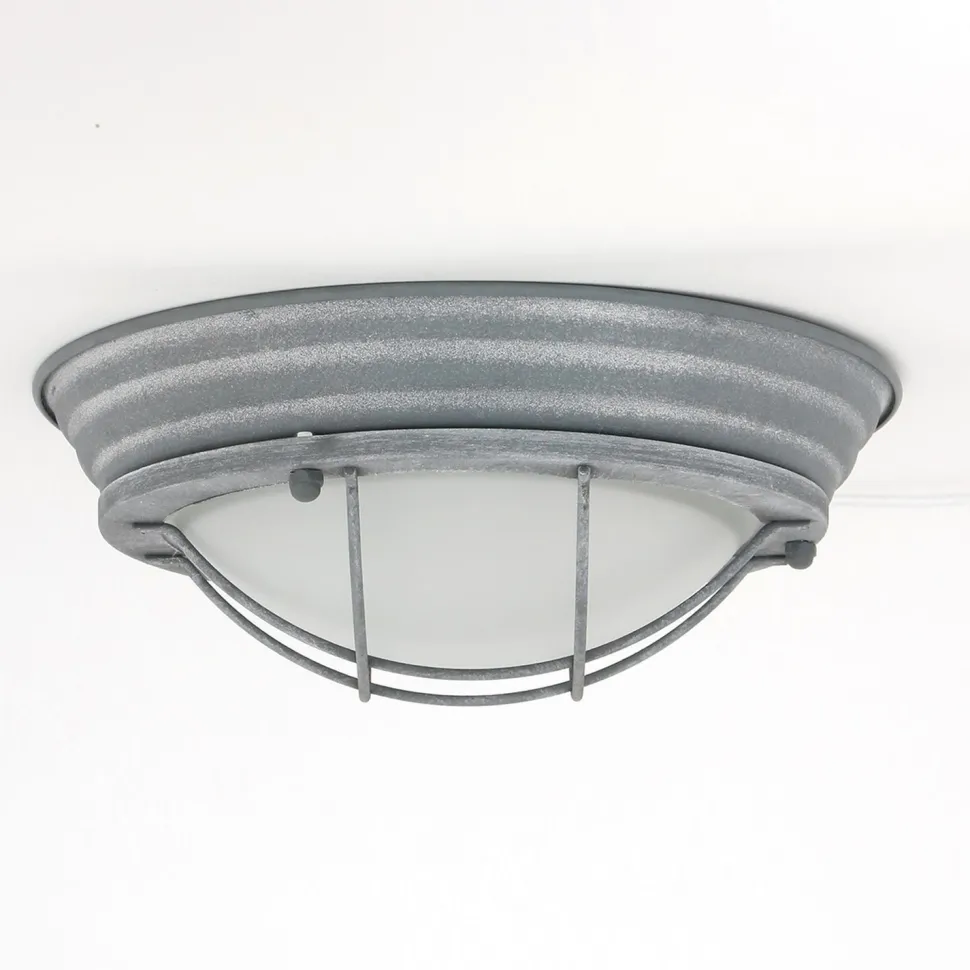Industrial Deckenlampe aus Metall und Glas in Grau