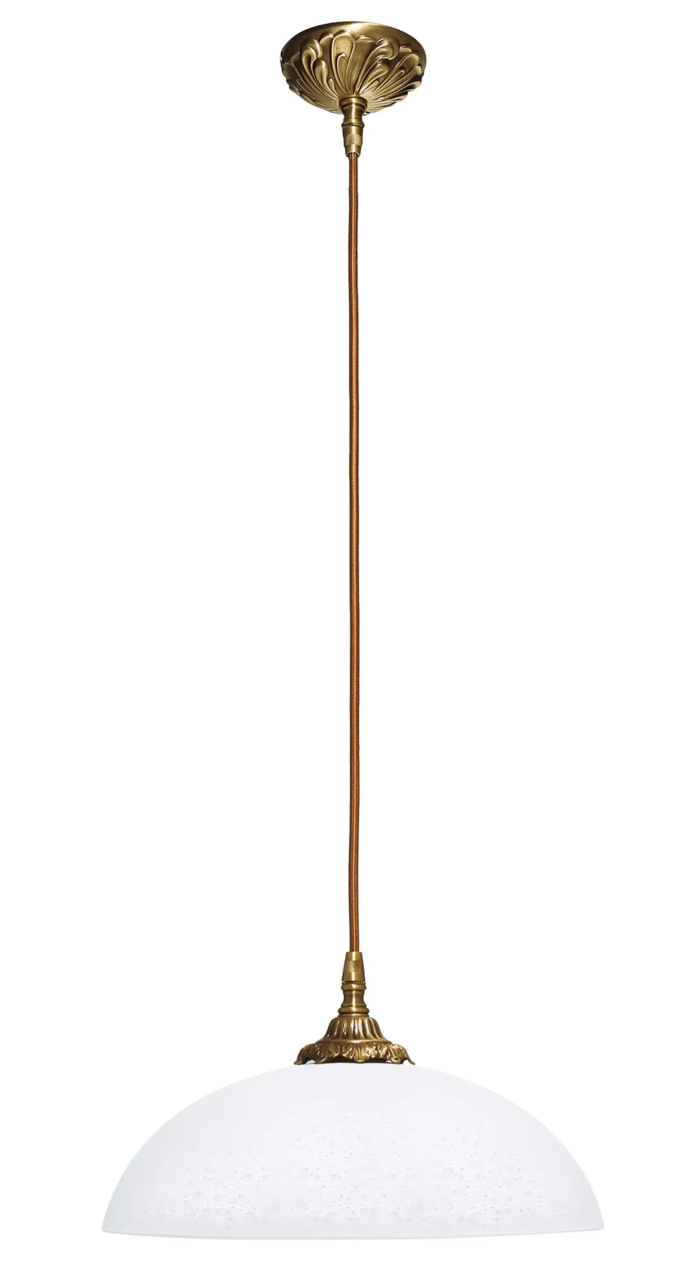 Schirm aus echtem Glas, Baldachin und Aufhängung aus echtem Messing und mit stiltypischer Ornamentverzierung