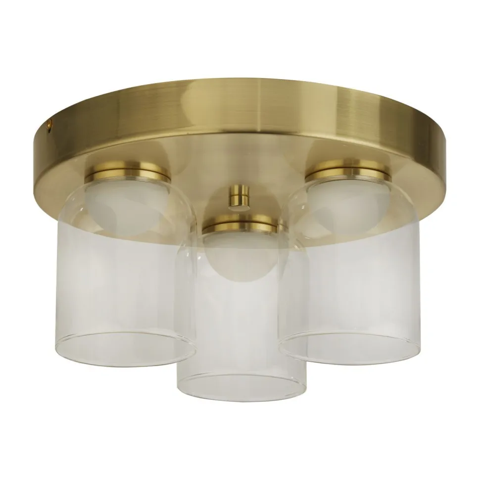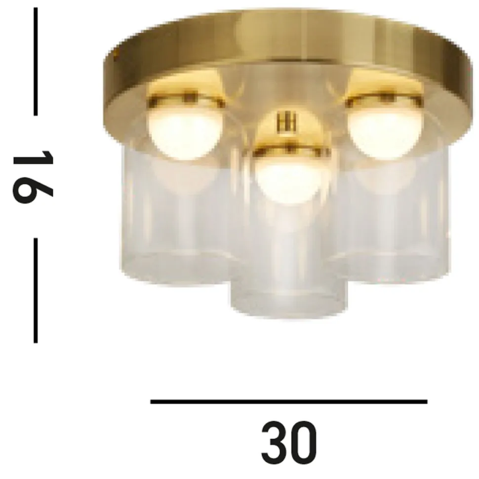 Moderne LED Deckenleuchte aus Stahl und Glas in Messing