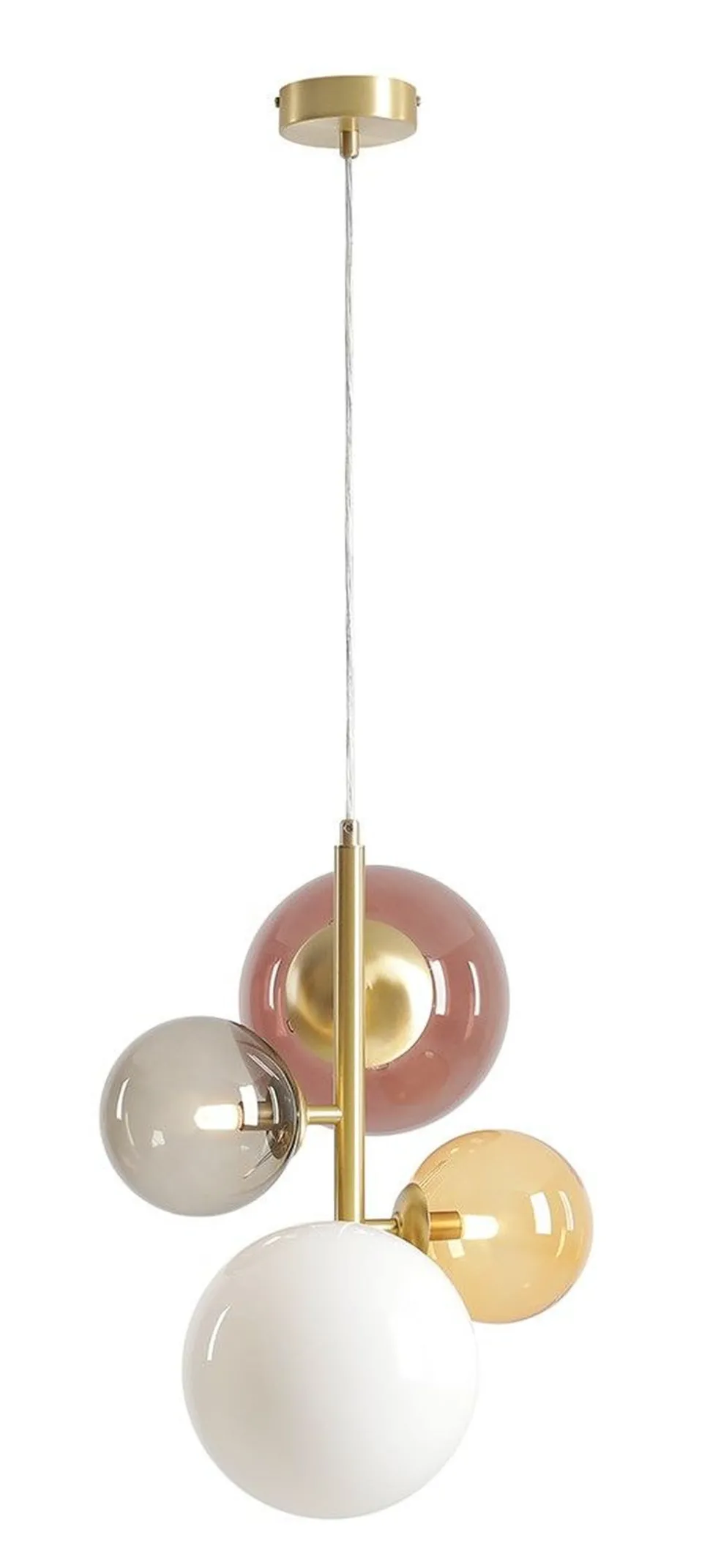 Moderne Pendelleuchte aus Metall und Glas in Messing, Weiß, Schwarz und Bernstein