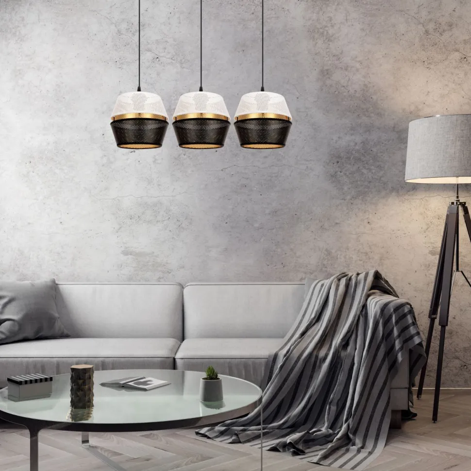 Loft Pendelleuchte aus Metall in Schwarz, Weiß und Gold