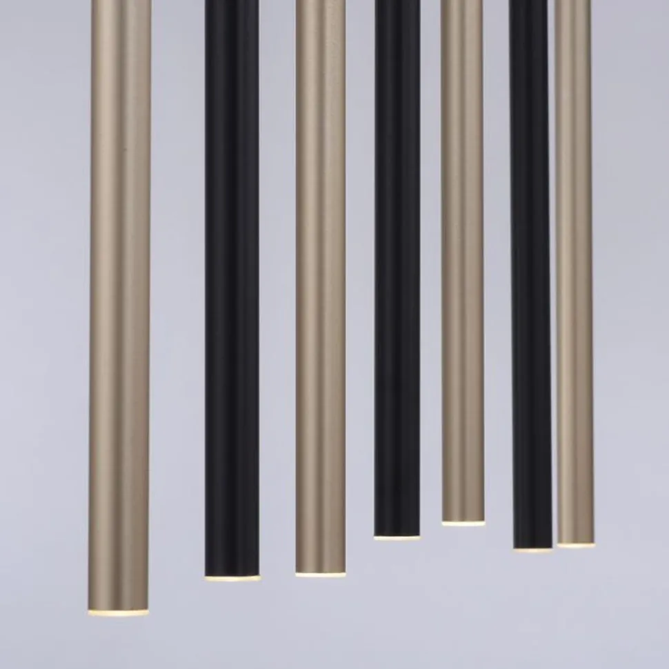 Das minimalistische Design in Kombination mit schmalen Zylindern und messingfarbenen Farbakzenten wirkt elegant und fügt sich ideal in moderne Wohnkonzepte ein