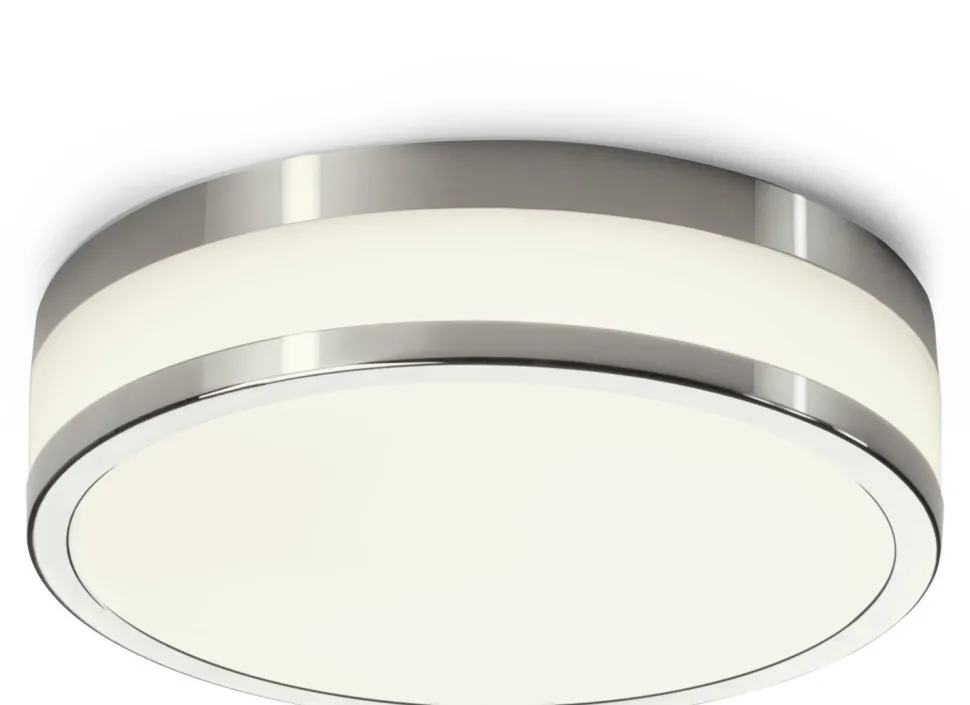 Der Schirm dieser Deckenleuchte ist eng an der Decke anliegend, sodass der Sockel nicht sichtbar ist