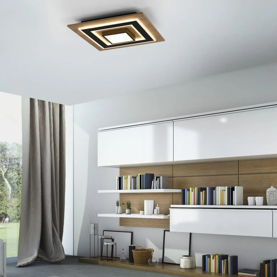 Rustikale LED Deckenleuchte aus Holz und Metall in Schwarz