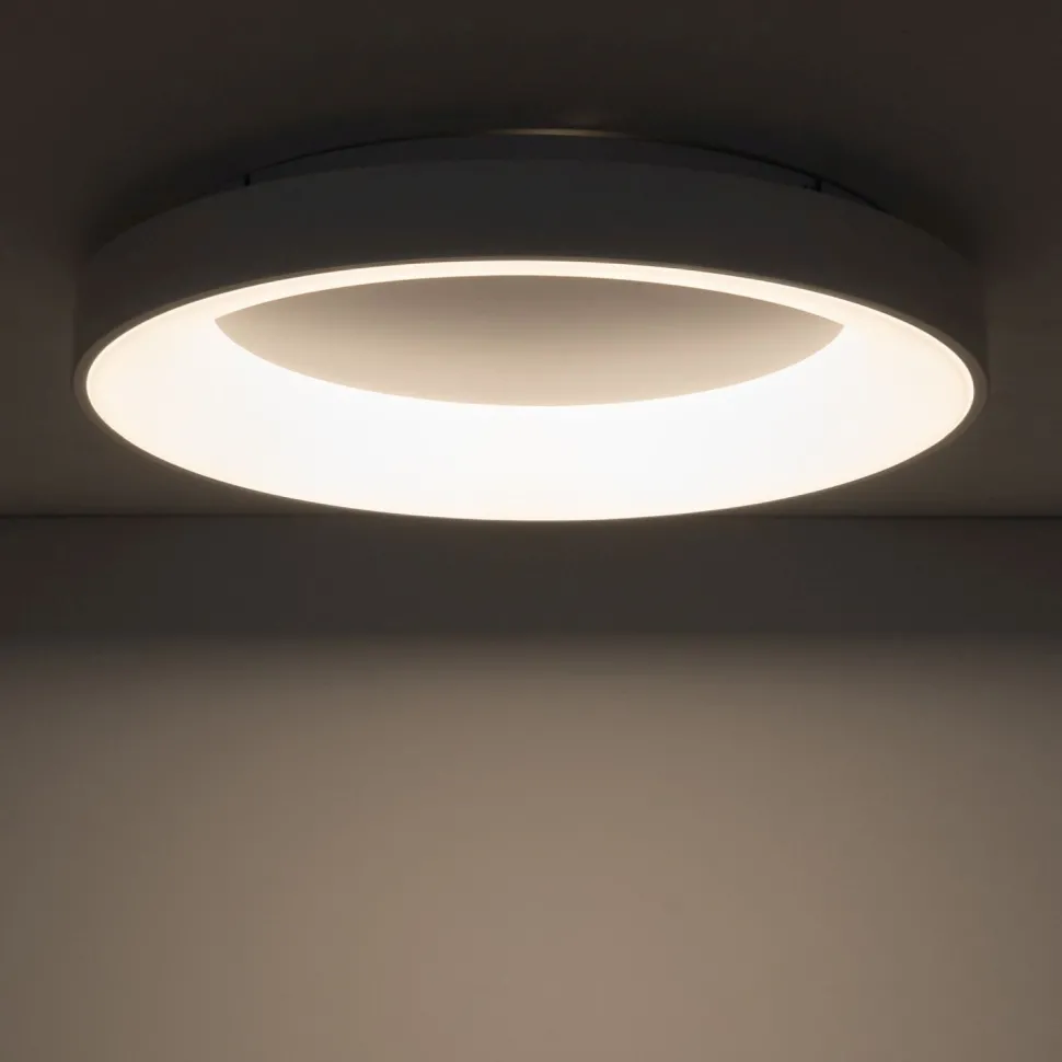Zeitlose LED Deckenlampe aus lackiertem Stahl und Kunststoff in Weiß