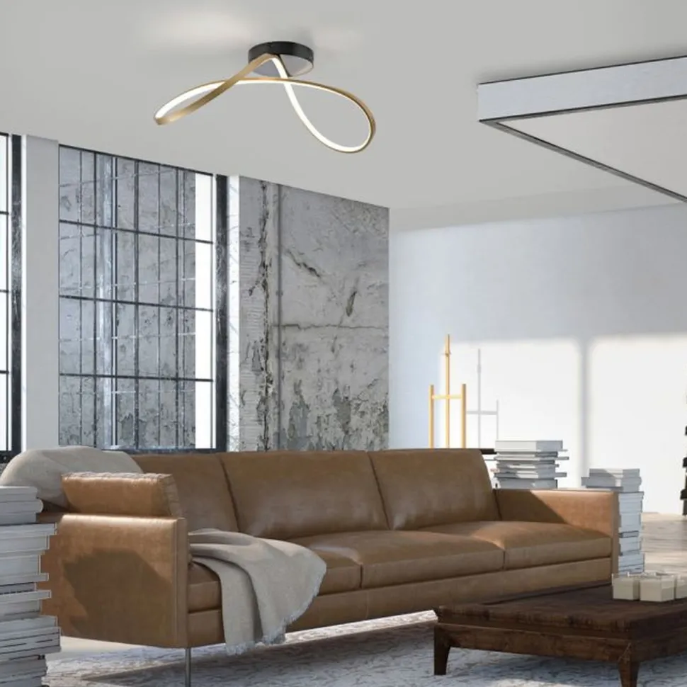 Moderne LED Deckenlampe aus Metall in Schwarz und Messing