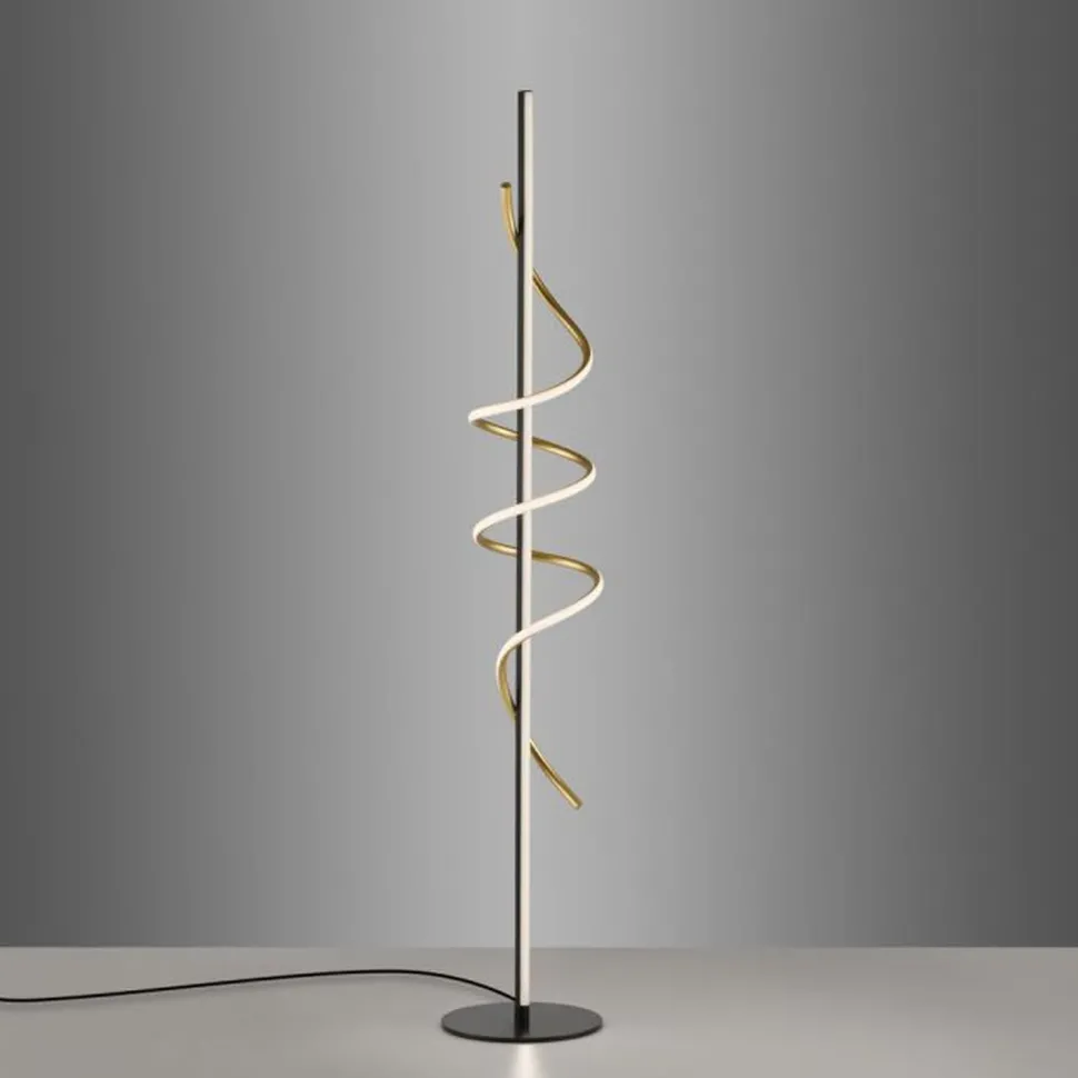 Moderne LED Stehlampe aus Metall in Schwarz und Messing