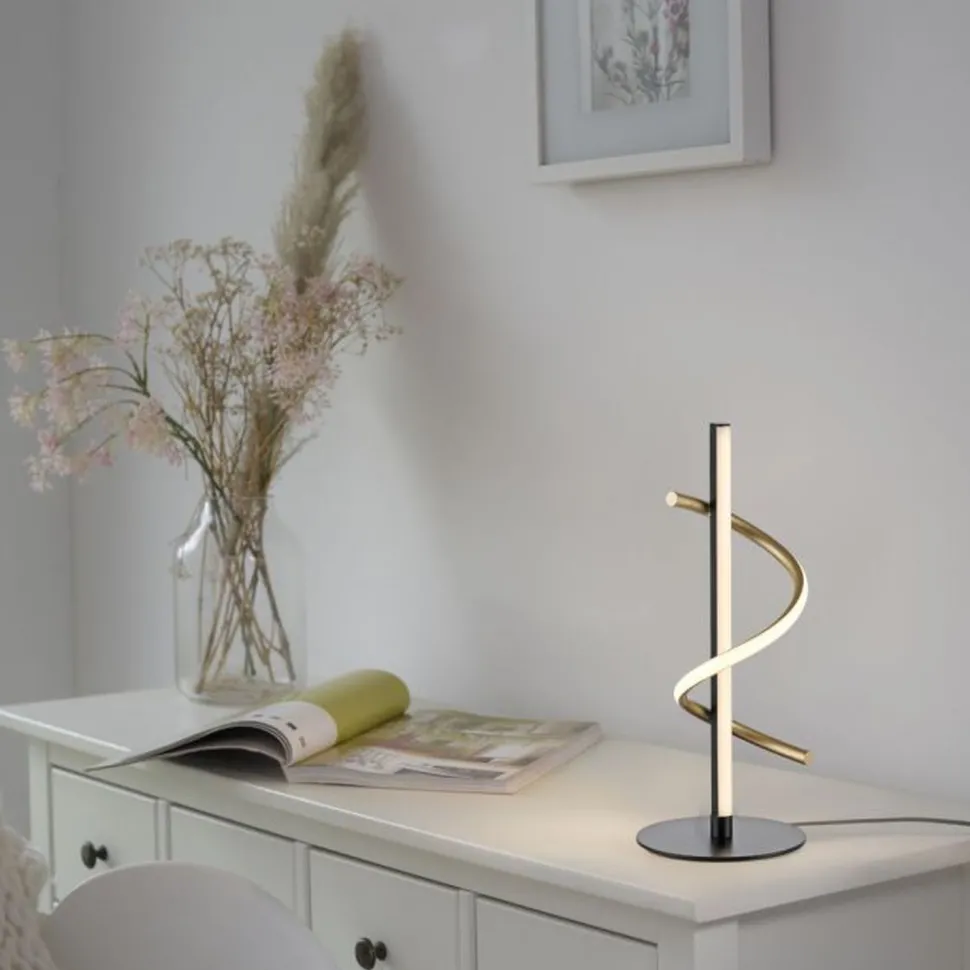 Moderne LED Tischlampe aus Metall in Schwarz und Messing