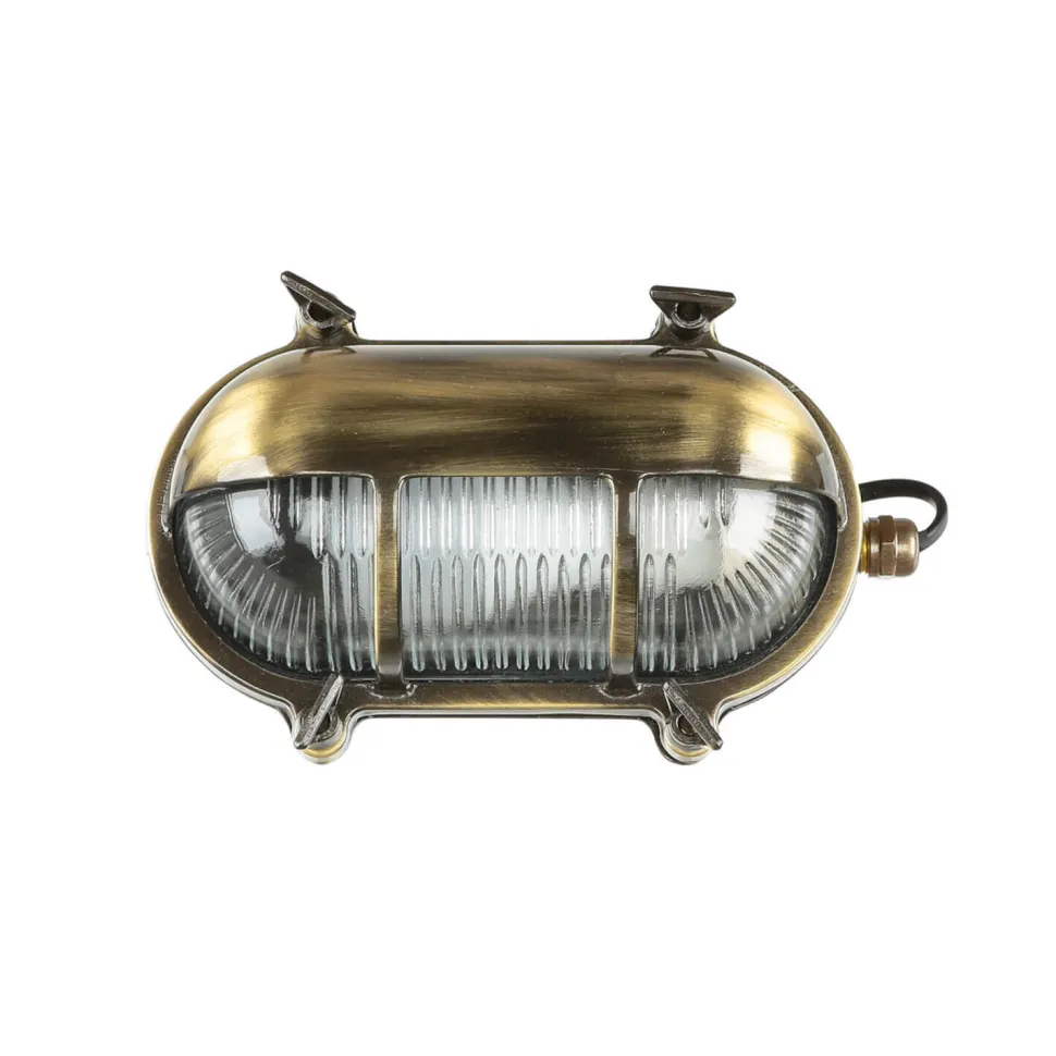 Maritime Außenwandlampe aus massivem Messing im Stil eines antiken Bullauges