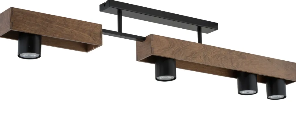 Moderne Deckenleuchte aus lackiertem Stahl und Sperrholz in Braun und Schwarz