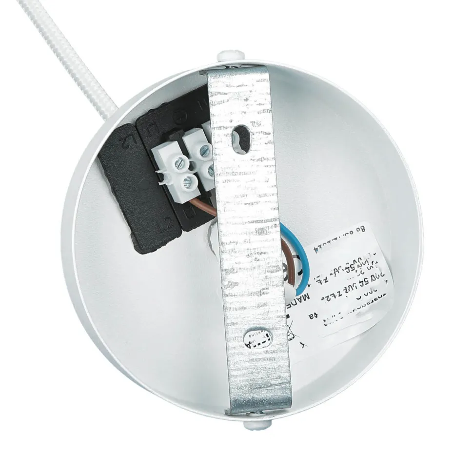 Leuchte ist an selbsttragendem Kabel aufgehängt
