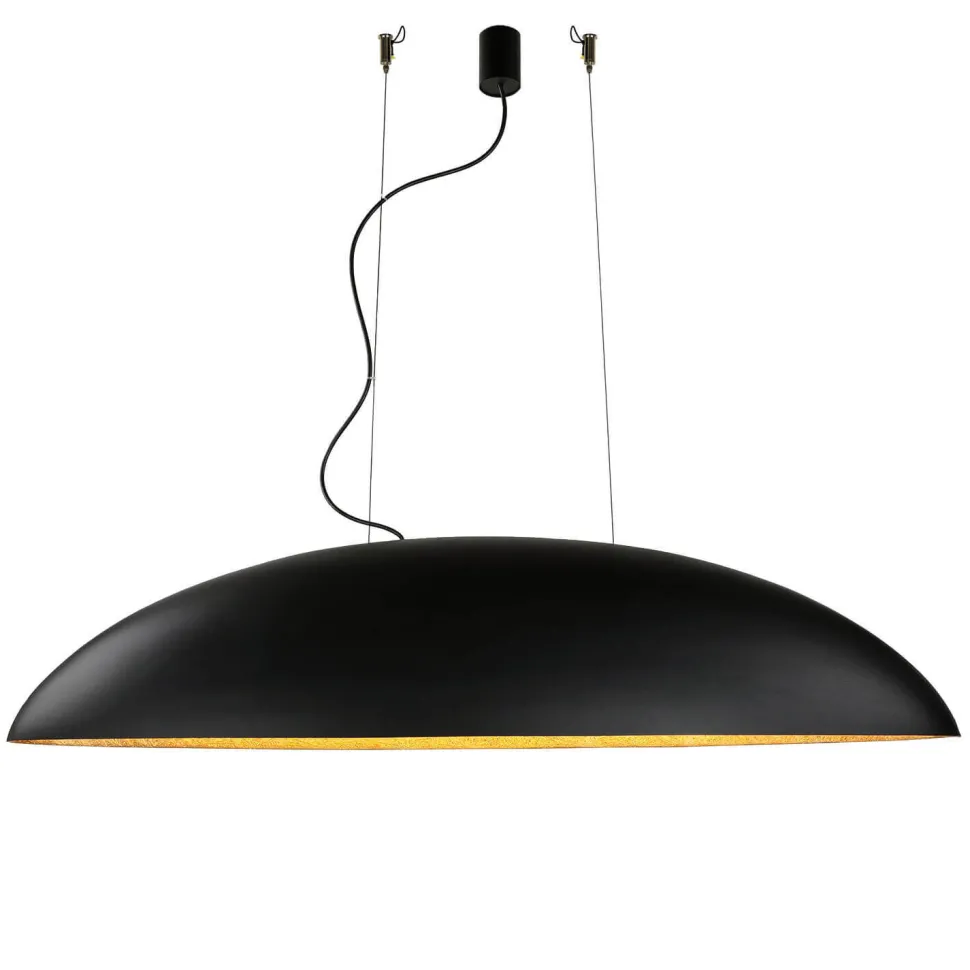 Die in Gold gehaltene Innenseite des Schirms sorgt für eine besondere Lichtstimmung