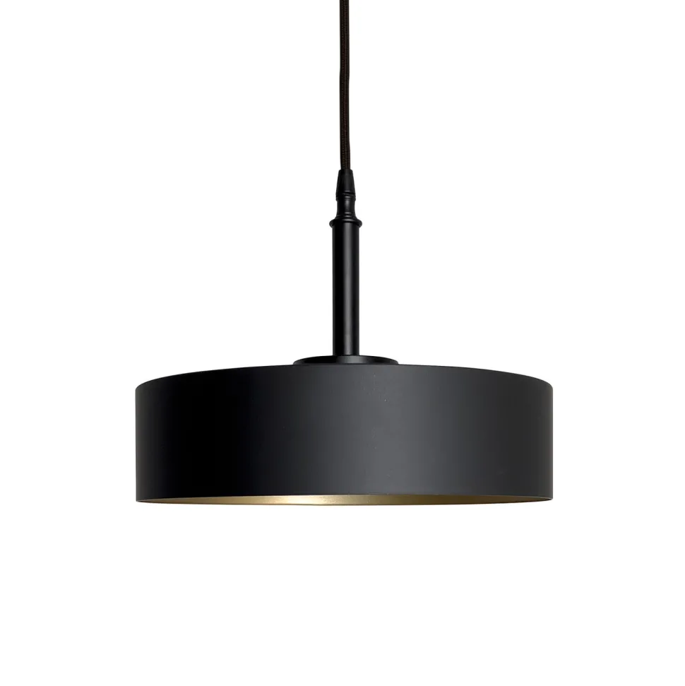 Längliche Pendelleuchte aus massivem Messing in Schwarz und Gold