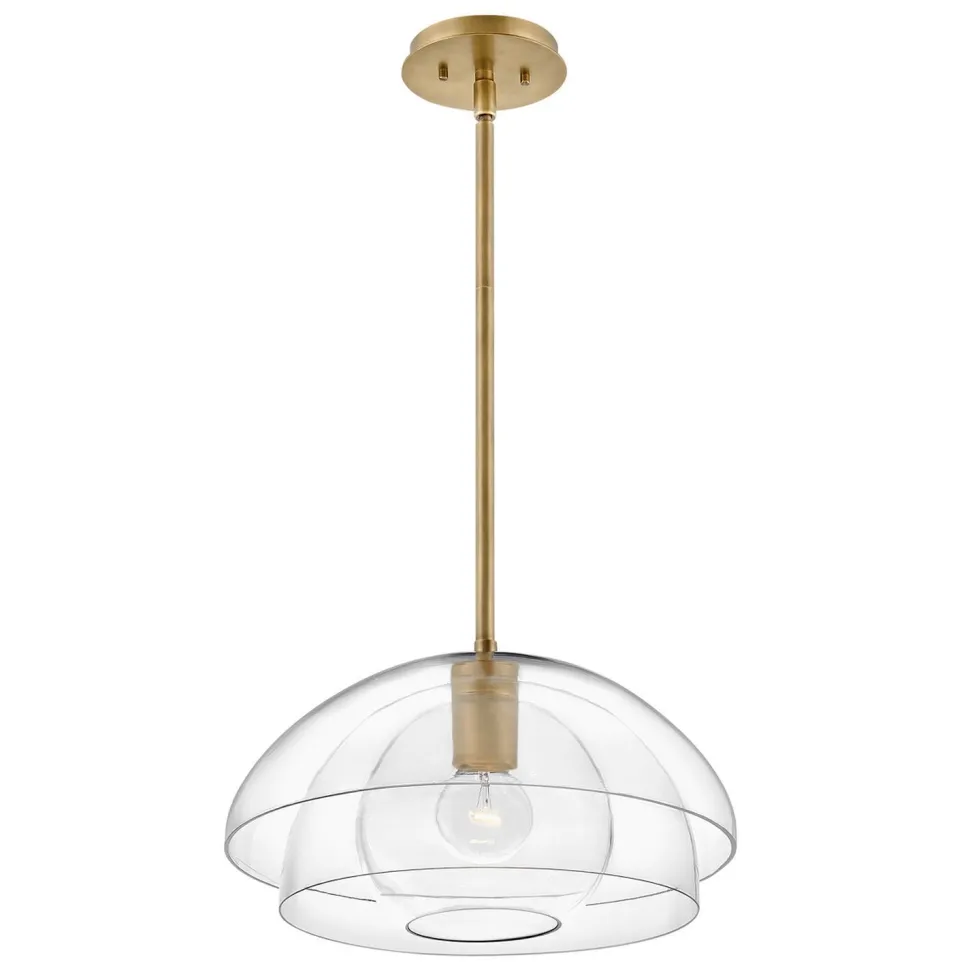 Eine offene und eine fast geschlossene Schale umhüllen den inneren Kugelschirm, was der Hängelampe einen außergewöhnlichen Look verleiht